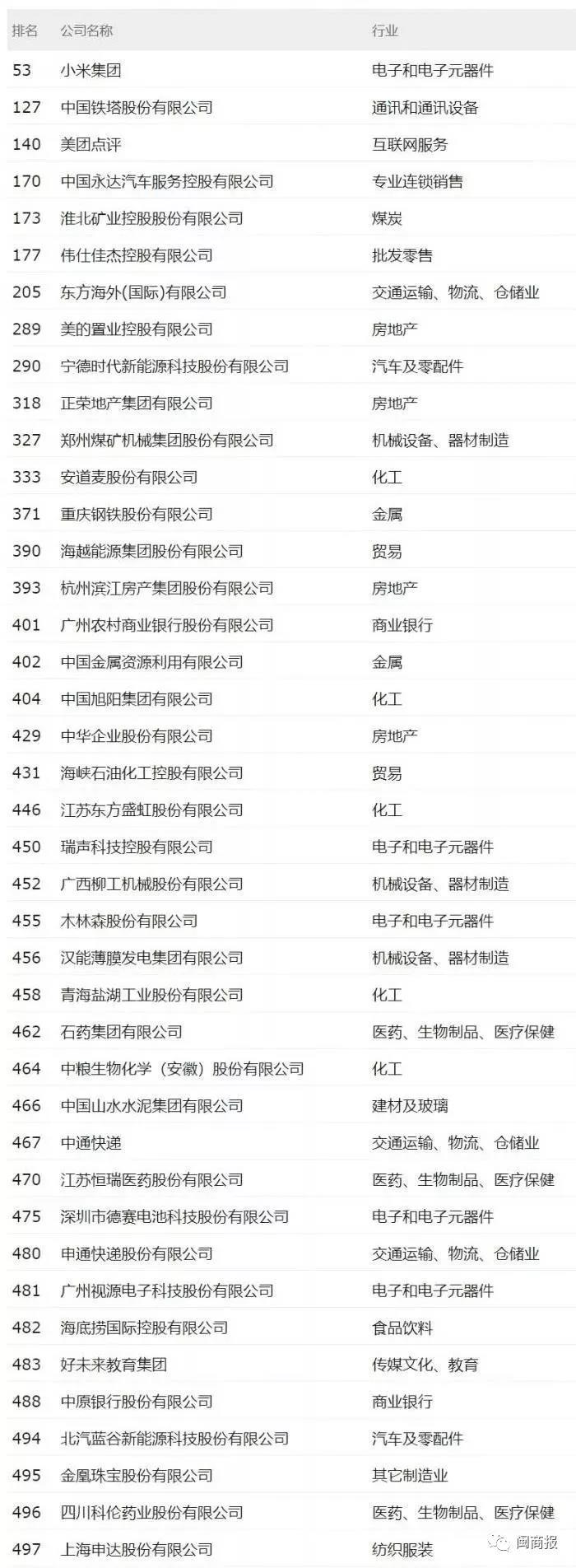 美團(tuán)、寧德時(shí)代、正榮地產(chǎn)首次上榜。今年共有42家新上榜和重新上榜的公司,美團(tuán)點(diǎn)評(píng)以652億元營(yíng)收排名第140位;寧德時(shí)代以296億營(yíng)收排名第290名;正榮地產(chǎn)以264億排名第318名。