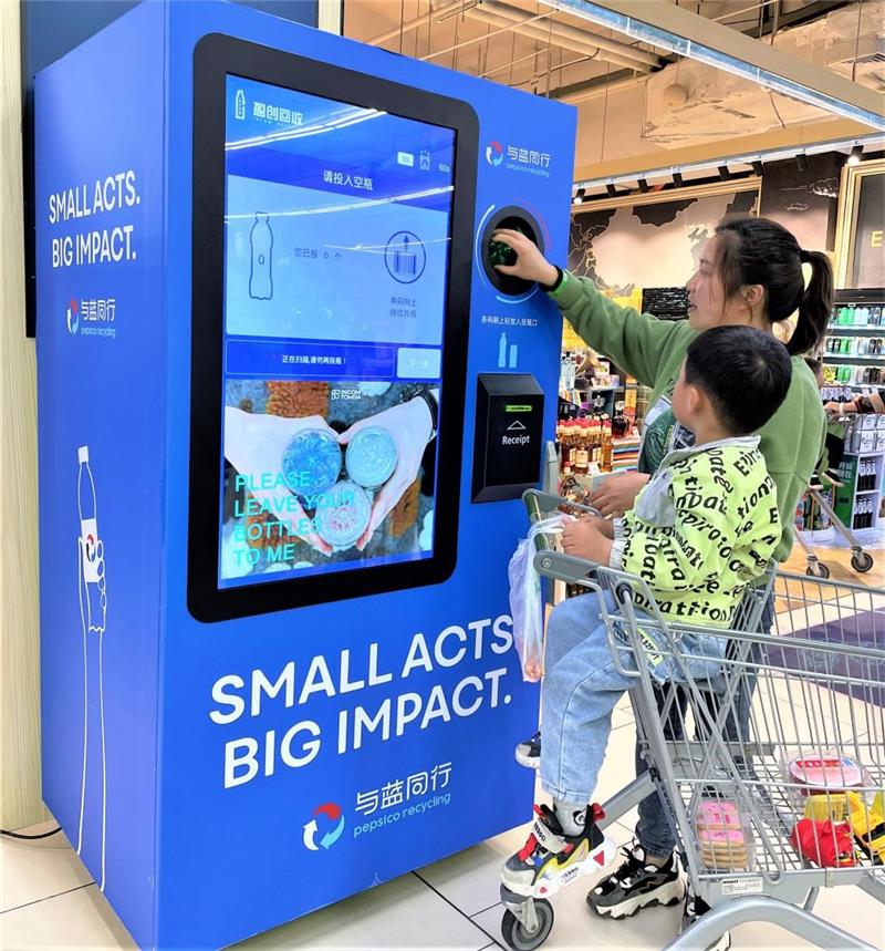 活動期間,百事的“PepsiCo Recycling與藍同行”智能回收機在永輝重慶生活廣場店、福州黎明店驚喜亮相。用戶掃描二維碼,投放塑料瓶,即可參與空瓶回收行動,獲得"保衛(wèi)值"。同時,太太樂也在永輝北京、上海指定門店投放軟包裝塑料回收設備。通過塑料回收再生,減少白色污染,助力循環(huán)經(jīng)濟。