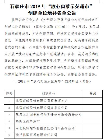 石家莊新增6家“放心肉菜示范超市” 永輝、興華入選