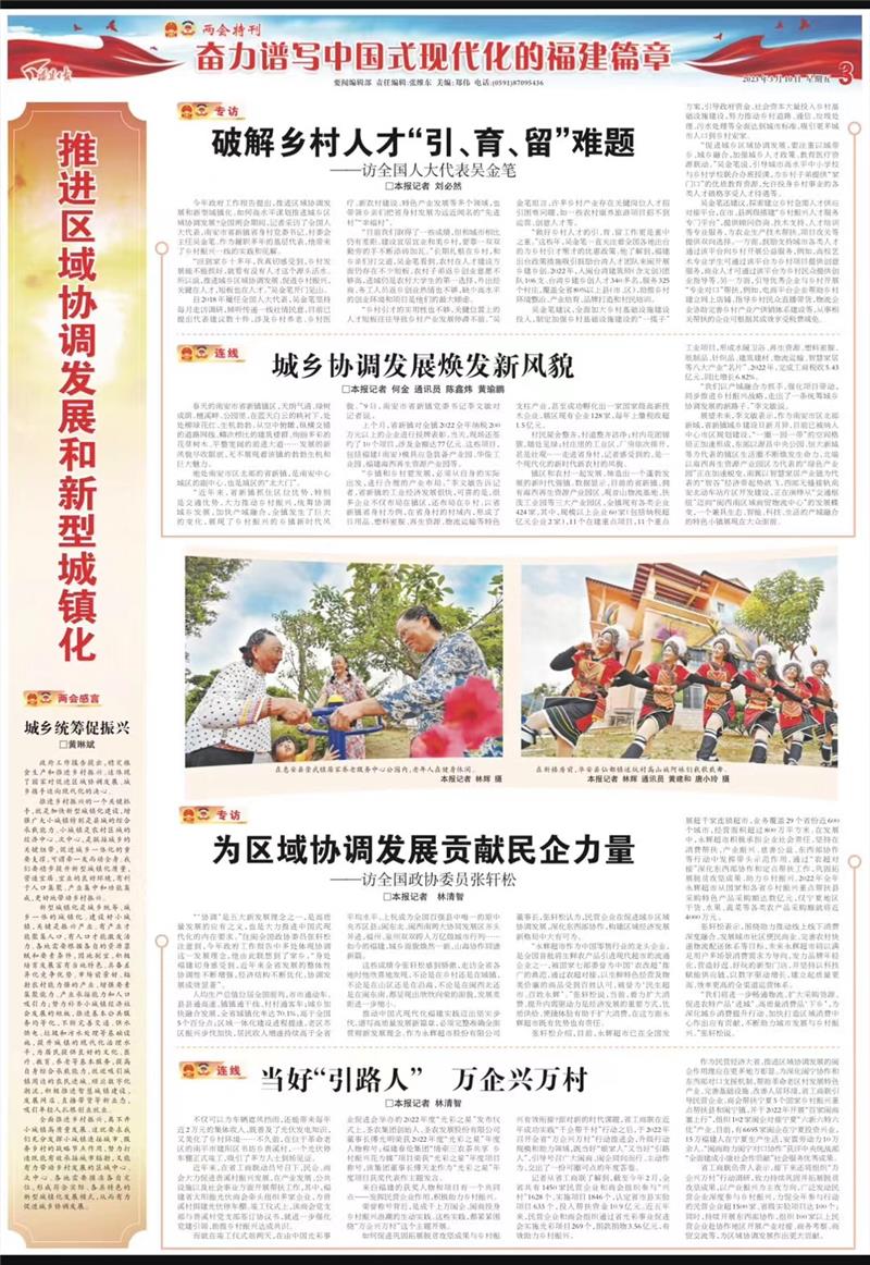 《福建日報(bào)》專訪全國政協(xié)委員張軒松:為區(qū)域協(xié)調(diào)發(fā)展貢獻(xiàn)民企力量
