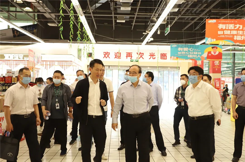石建平組長一行蒞臨永輝超市福州福新店,查看公司食品安全管理體系和食品安全數(shù)字化建設(shè)成果,永輝超市食品安全總監(jiān)陳建國講解了源頭管控、進貨查驗、儲存管理等食品安全管理以及檢測追溯體系建設(shè),現(xiàn)場展示了福建省“一品一碼”追溯系統(tǒng)和永輝超市“食品安全云網(wǎng)”的應(yīng)用成效。