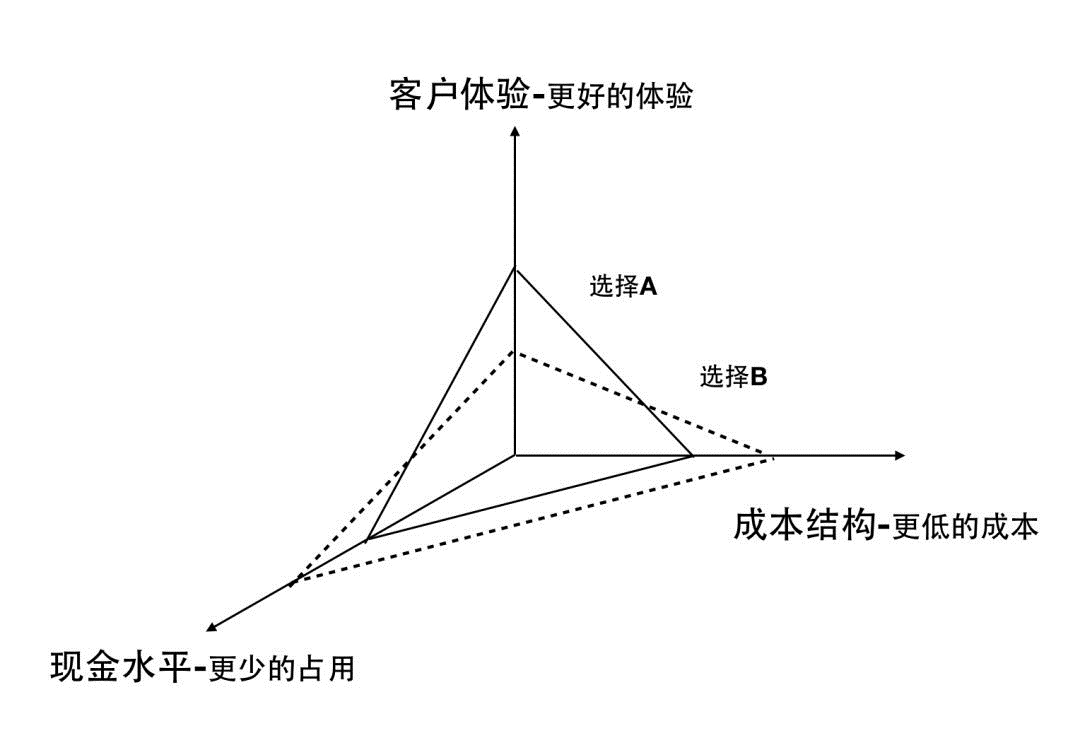 從每一個單一維度來看,三個維度都有各自的最優(yōu)方向,客戶越滿意越好,成本越低越好,現(xiàn)金占用越少越好。但現(xiàn)實(shí)中,短期內(nèi)這三個維度之間互相影響,甚至互相排斥。