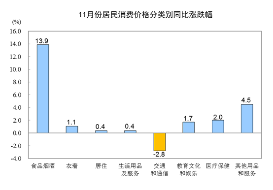 11月全國居民消費(fèi)價(jià)格同比上漲4.5%