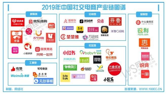 據(jù)網(wǎng)經(jīng)社監(jiān)測(cè)顯示,目前社交電商市場(chǎng)主要的玩家包括:1)拼購(gòu)型:拼多多、京東拼購(gòu)、京喜、蘇寧拼購(gòu)、淘寶特價(jià)版、小鵝拼拼、國(guó)美美店等;2)分銷(xiāo)型:愛(ài)庫(kù)存、斑馬會(huì)員、貝店、芬香、花生日記、未來(lái)集市、達(dá)令家、粉象生活、楚楚推、萬(wàn)色城、洋蔥OMALL等;3)社區(qū)型:小紅書(shū)商城、寶寶樹(shù)、考拉精選、年糕媽媽、有好東西、你我您、食享會(huì)、十薈團(tuán)等;4)導(dǎo)購(gòu)型:返利網(wǎng)、什么值得買(mǎi)、一淘網(wǎng)、淘粉吧、識(shí)貨網(wǎng)、惠惠等;5)工具型:有贊、微盟、點(diǎn)點(diǎn)客、可可奇貨、無(wú)敵掌柜等。