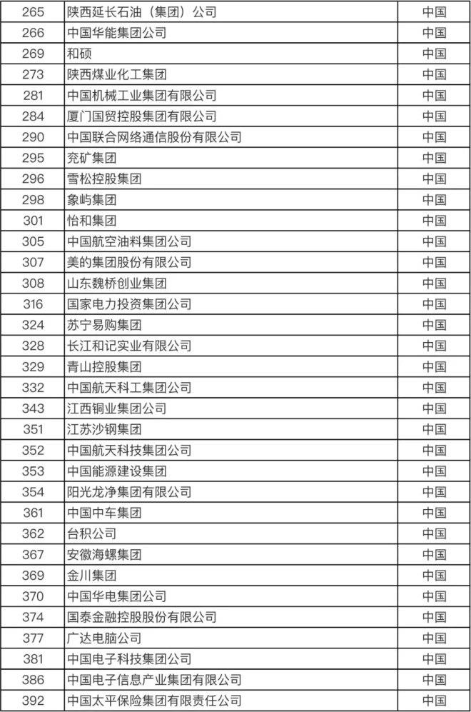 以下為2020年《財(cái)富》世界500強(qiáng)中國(guó)榜單:
