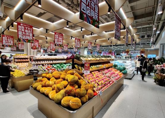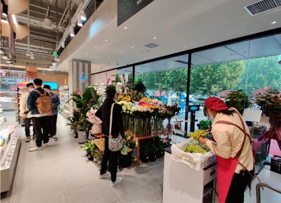蔬果區(qū)、肉禽、水產、雜百、日料、烘焙、酒水、鮮花、即食等區(qū)域形成有效劃分,為商圈內的社區(qū)居民帶來更為精選的全球好商品,且作為商圈內為數不多能提供線上線下一體化服務的門店,勢必能給周邊3公里范圍內的居民帶來全球化的品質、便捷的消費體驗。