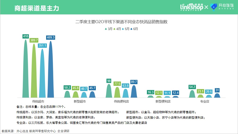 從數(shù)據(jù)上看,二季度主要O2O平臺快消品銷售渠道中,傳統(tǒng)渠道依舊是主力,其中傳統(tǒng)商超便利店占比超過80%。