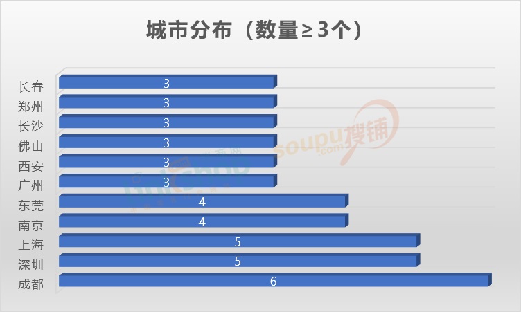 其他諸如重慶、嘉興、寧波、蘇州、濟(jì)南、德州、廈門、衡陽(yáng)、蘭州等城市的開業(yè)量也均在2個(gè)及其以上的水平。