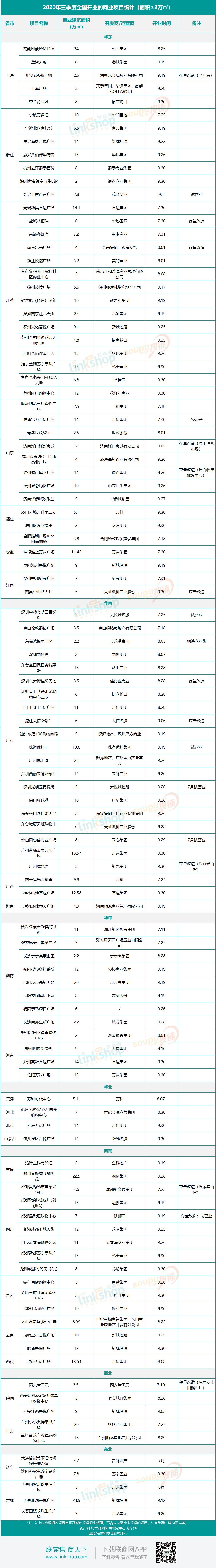附:2020年三季度新開商業(yè)項(xiàng)目統(tǒng)計(jì)表