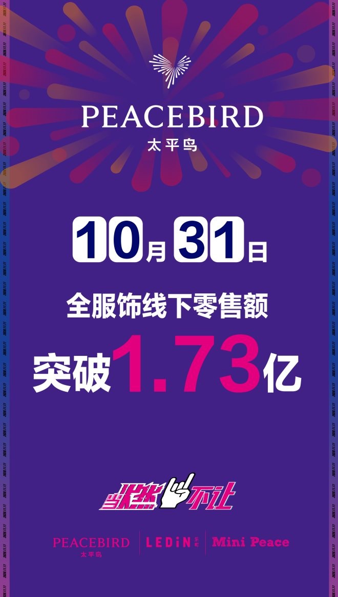 此外,截止31日24時(shí),太平鳥全服飾品牌線下零售額突破1.73億。
