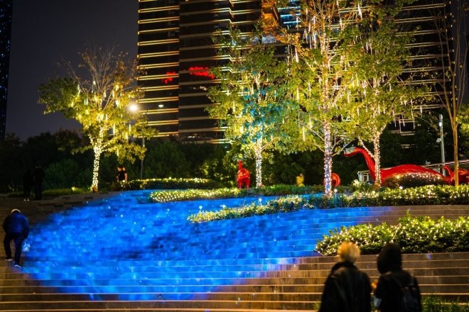 亮燈儀式在來福士戶外同步開啟,建筑四周的街道都懸掛起斑斕的流星燈飾,星光點(diǎn)點(diǎn)圍繞著整個(gè)來福士的四周,整條街的空氣就變得更為靈動(dòng),散發(fā)著濃濃的耶誕氛圍,穿行在杭州來福士摩天立體城市,即便天氣寒冷也能感覺到很溫暖。在B1下沉星階廣場(chǎng)設(shè)置了交互式燈光體驗(yàn),每一個(gè)動(dòng)作、每一個(gè)腳步都會(huì)引起各種想象不到的光影變化,為消費(fèi)者打造一個(gè)沉浸式3D互動(dòng)體驗(yàn)的世界。當(dāng)夜幕降臨后,消費(fèi)者可以邊享受購(gòu)物的樂趣,邊抬眼觀望點(diǎn)點(diǎn)星塵,好似一場(chǎng)時(shí)空交錯(cuò)的浪漫旅程。