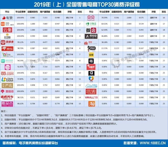30家零售電商上消費評級榜 各類電商表現(xiàn)“參次不齊”