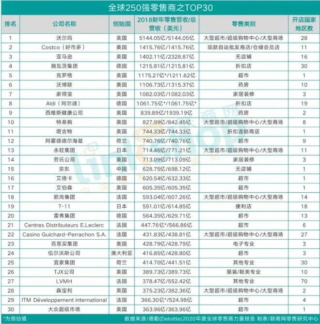 2020全球零售商排行:沃爾瑪蟬聯(lián)榜首 阿里首入榜單