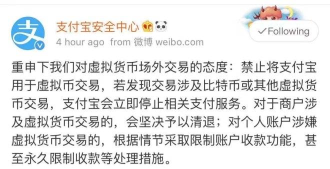 微信支付、支付寶突發(fā)聲明:不支持虛擬幣交易 發(fā)現(xiàn)立即清退