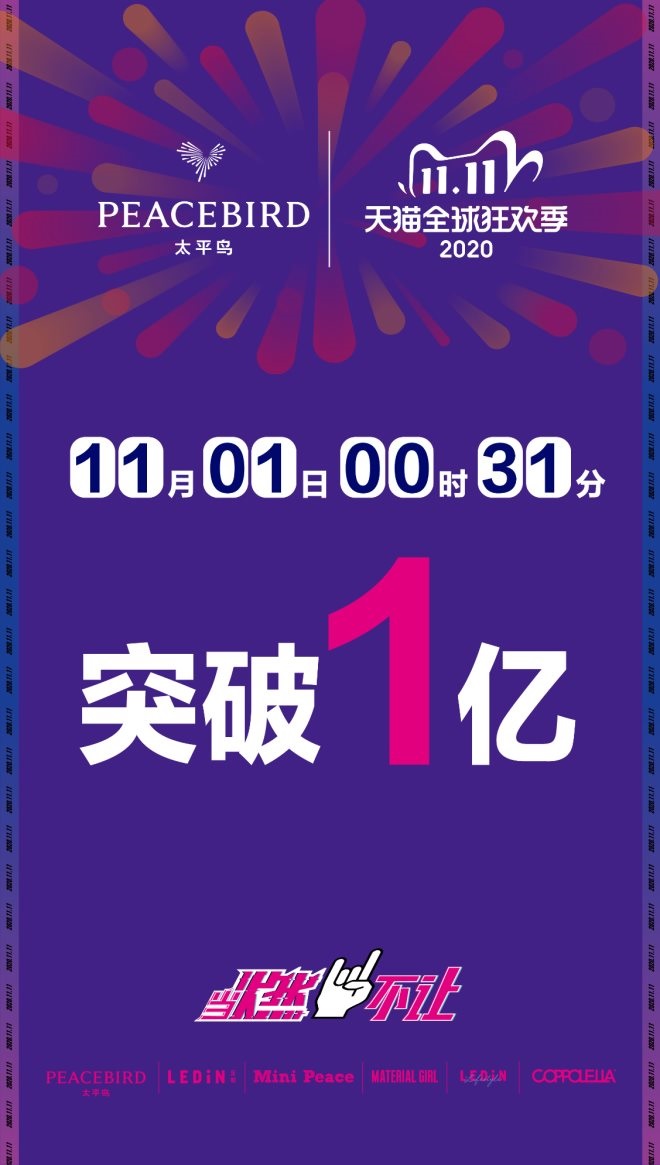 太平鳥雙11戰(zhàn)報:天貓零售31分破億