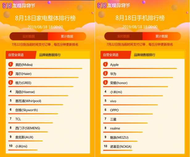 蘇寧818全程戰(zhàn)報:美的蘋果分列家電3C第一 五糧液加冕