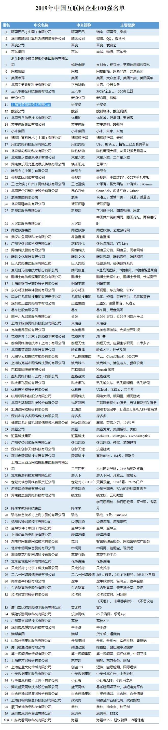 2019年中國互聯(lián)網(wǎng)企業(yè)100強:阿里第一 京東第四