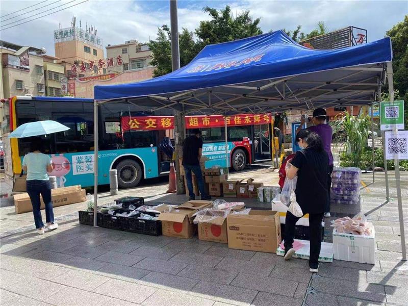 6月初,廣州市新型冠狀病毒肺炎疫情防控指揮部將荔灣區(qū)“南片”芳村片區(qū)調(diào)整為封控管理區(qū)域。為應(yīng)對封控管理區(qū)域農(nóng)貿(mào)市場關(guān)停的影響,保障居民基本生活物資需求,市、區(qū)商務(wù)部門迅速反應(yīng),開展 “公交移動超市”行動,安排多輛公交車每天分別進(jìn)駐各重點街區(qū)為當(dāng)?shù)鼐用裉峁┵I菜服務(wù)。超市每天的營業(yè)時間不低于6小時,盡可能為居民的購物提供便利。廣州百佳永輝積極參與到“公交移動超市”的運營中,最大限度保證物資品類齊全、居民選擇空間充足。