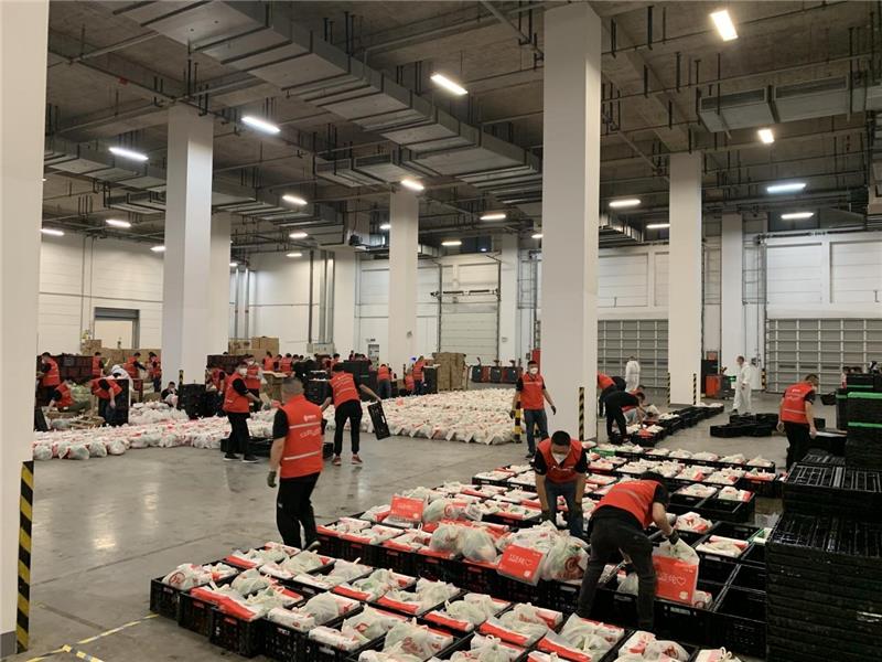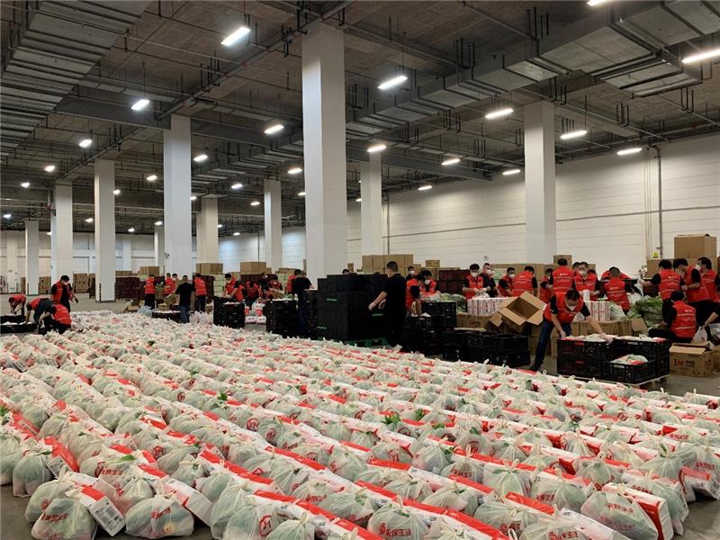 本次增調(diào)人員多為熟練的揀貨打包工作人員,將在寶山月浦倉建立保供物資中央工廠,生產(chǎn)套餐并組織車輛配合政府進(jìn)行抗疫保供工作。