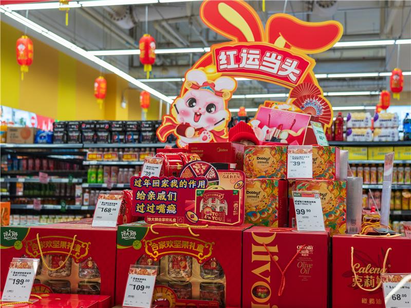 數(shù)據(jù)顯示,兔年除夕前一周,永輝生鮮品類同比增長近90%。其中,伴隨春節(jié)期間消費(fèi)者走親訪友需求增加,干貨類、水果類銷售表現(xiàn)較好,冰鮮類、貝類的銷售額同比增長幅度均超過200%。