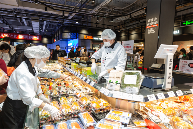 此次調(diào)改,團(tuán)隊(duì)先后派遣多組人員前往河南胖東來門店學(xué)習(xí),以胖東來的管理模式和文化理念,結(jié)合永輝超市實(shí)際情況,圍繞北京市提出的“強(qiáng)化以消費(fèi)者為中心的理念,營造友好型消費(fèi)環(huán)境”的工作方向,凸顯品質(zhì)、健康、煙火氣,把更具吸引力的線下新型消費(fèi)場景帶給顧客。此外,調(diào)改后,門店員工的最低工資從每月4000元提升至每月6000元,一線員工工資普遍增長,平均提升超20%,員工休息室、更衣室、培訓(xùn)室、辦公室都裝修升級(jí),大大改善了員工的工作環(huán)境。同時(shí),門店還縮短了營業(yè)時(shí)間,增加年休假,提倡讓員工在工作中感受更多的尊重和快樂。