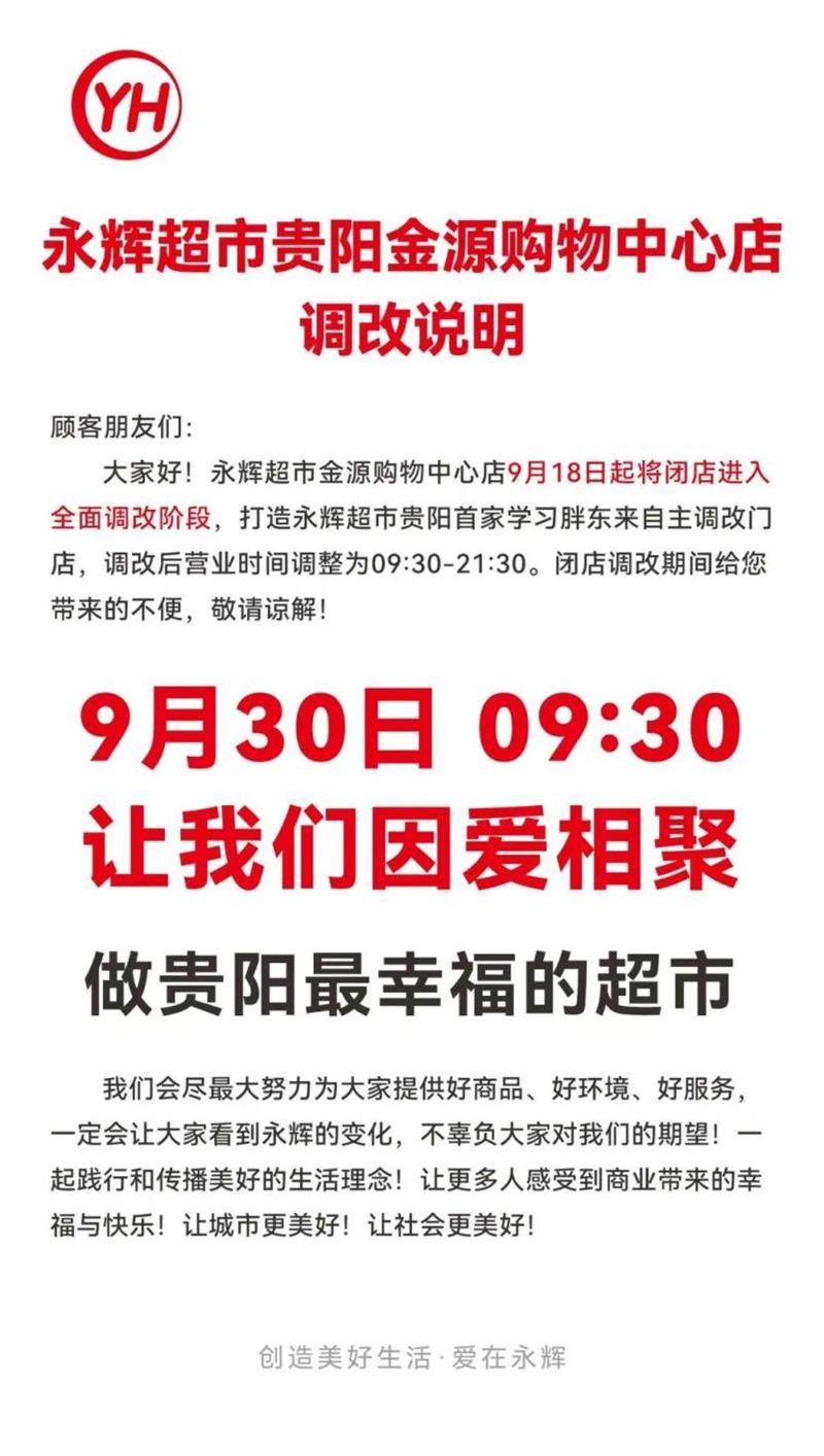 永輝超市貴陽金源購物中心店計(jì)劃于9月30日恢復(fù)正常營(yíng)業(yè)。 ...