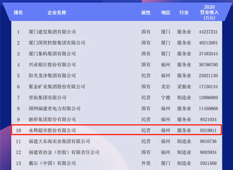 永輝榮登“福建企業(yè)100強(qiáng)”榜單