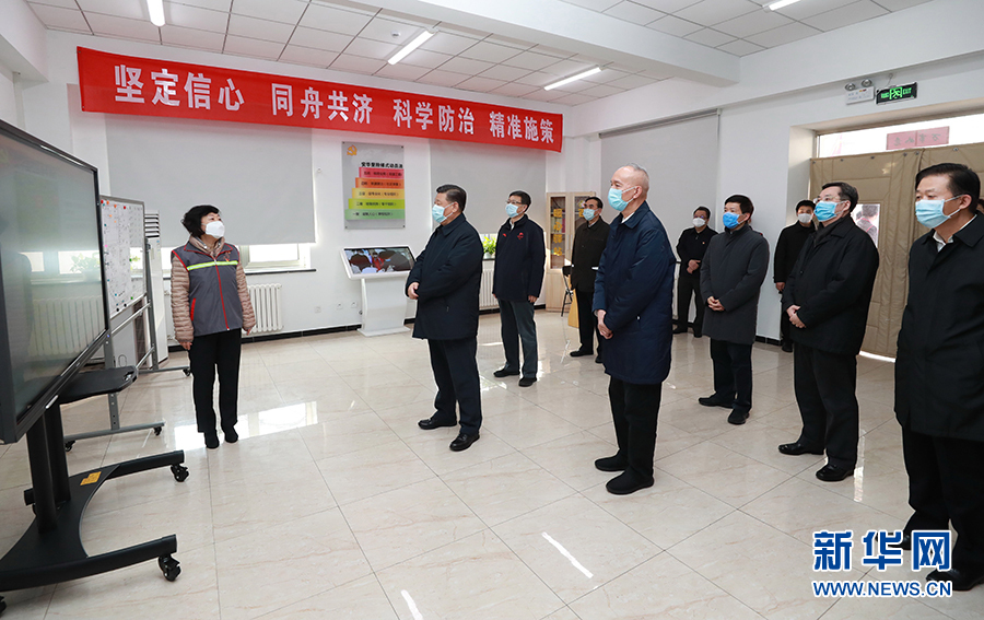 習(xí)近平首先來到北京市朝陽(yáng)區(qū)安貞街道安華里社區(qū),了解基層一線疫情聯(lián)防聯(lián)控情況。在社區(qū)居民委員會(huì)疫情防控指揮部,習(xí)近平聽取了安貞街道和安華里社區(qū)開展聯(lián)防聯(lián)控情況介紹。習(xí)近平對(duì)社區(qū)采取多項(xiàng)措施,落實(shí)防控責(zé)任,實(shí)現(xiàn)入戶排查、重點(diǎn)群體監(jiān)控“兩個(gè)全覆蓋”等做法表示肯定。他強(qiáng)調(diào),社區(qū)是疫情聯(lián)防聯(lián)控的第一線,也是外防輸入、內(nèi)防擴(kuò)散最有效的防線。把社區(qū)這道防線守住,就能有效切斷疫情擴(kuò)散蔓延的渠道。全國(guó)都要充分發(fā)揮社區(qū)在疫情防控中的阻擊作用,把防控力量向社區(qū)下沉,加強(qiáng)社區(qū)各項(xiàng)防控措施的落實(shí),使所有社區(qū)成為疫情防控的堅(jiān)強(qiáng)堡壘。要以疫情防控工作成效來檢驗(yàn)和拓展“不忘初心、牢記使命”主題教育成果,發(fā)揮基層黨組織政治引領(lǐng)作用和黨員先鋒模范作用,把社區(qū)居民發(fā)動(dòng)起來,構(gòu)筑起疫情防控的人民防線。